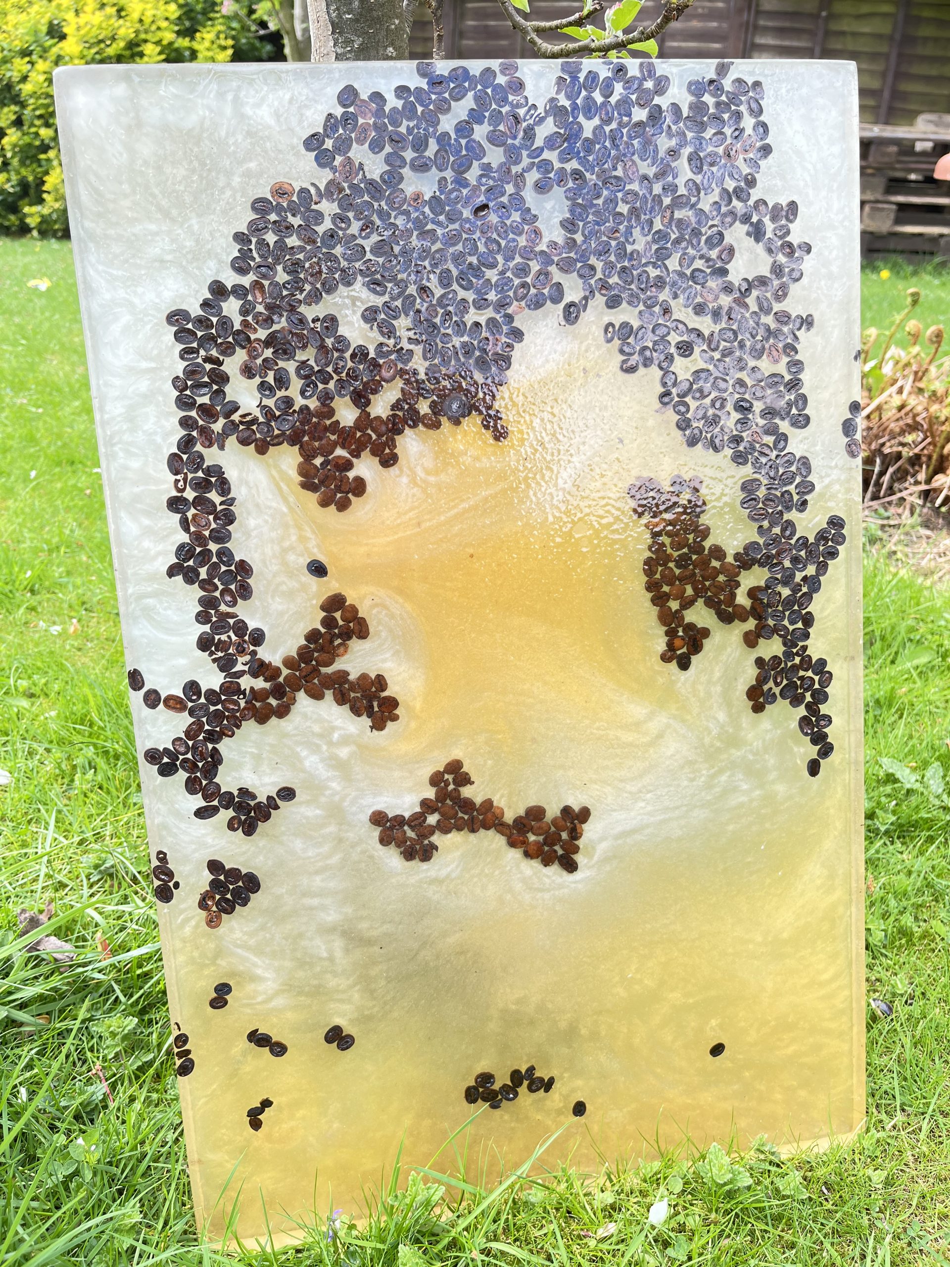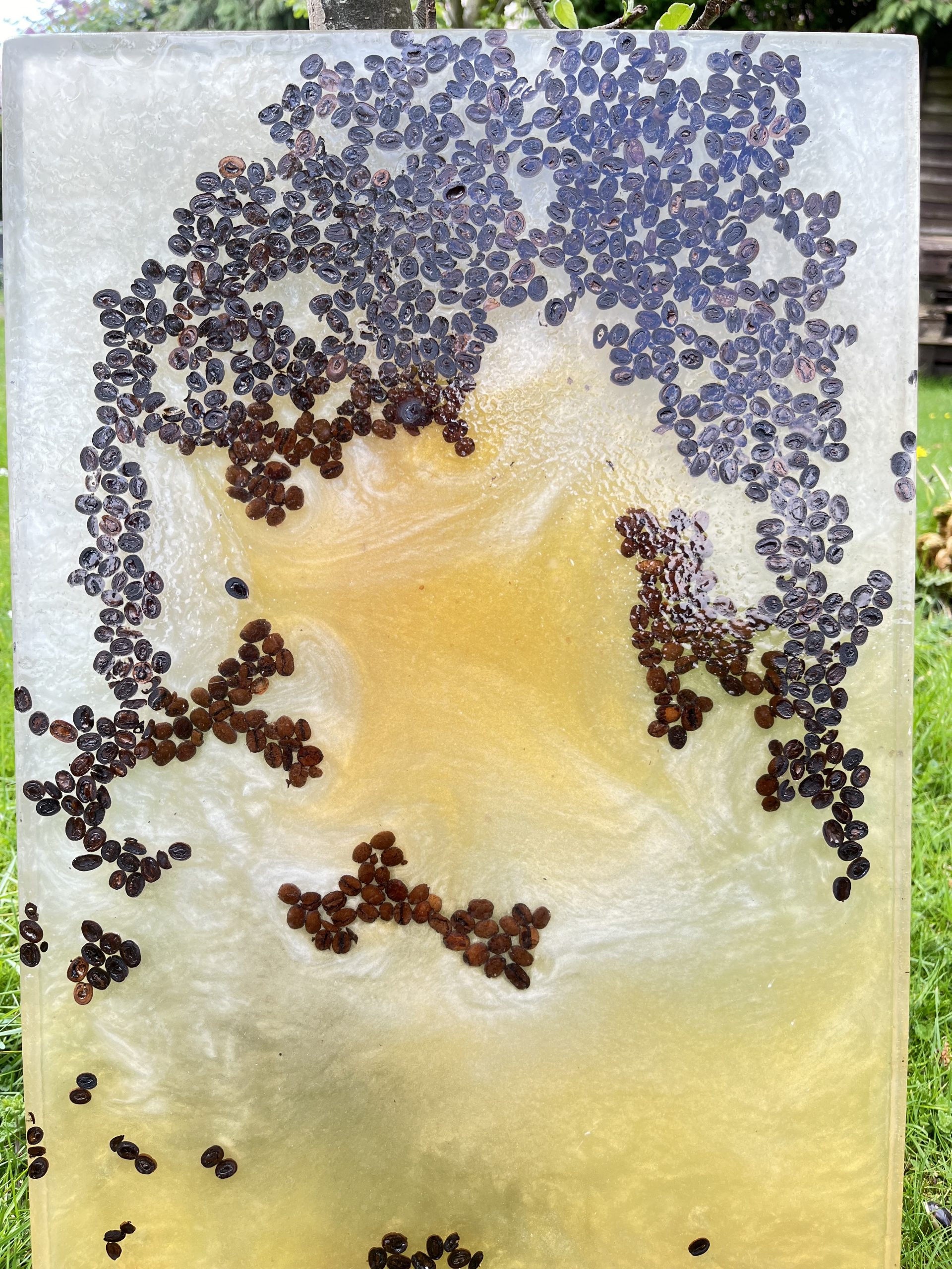 Handmade , encapsulating coffee beans .. with a ripple effect surface. Hand poured.. (600x400) approximately .