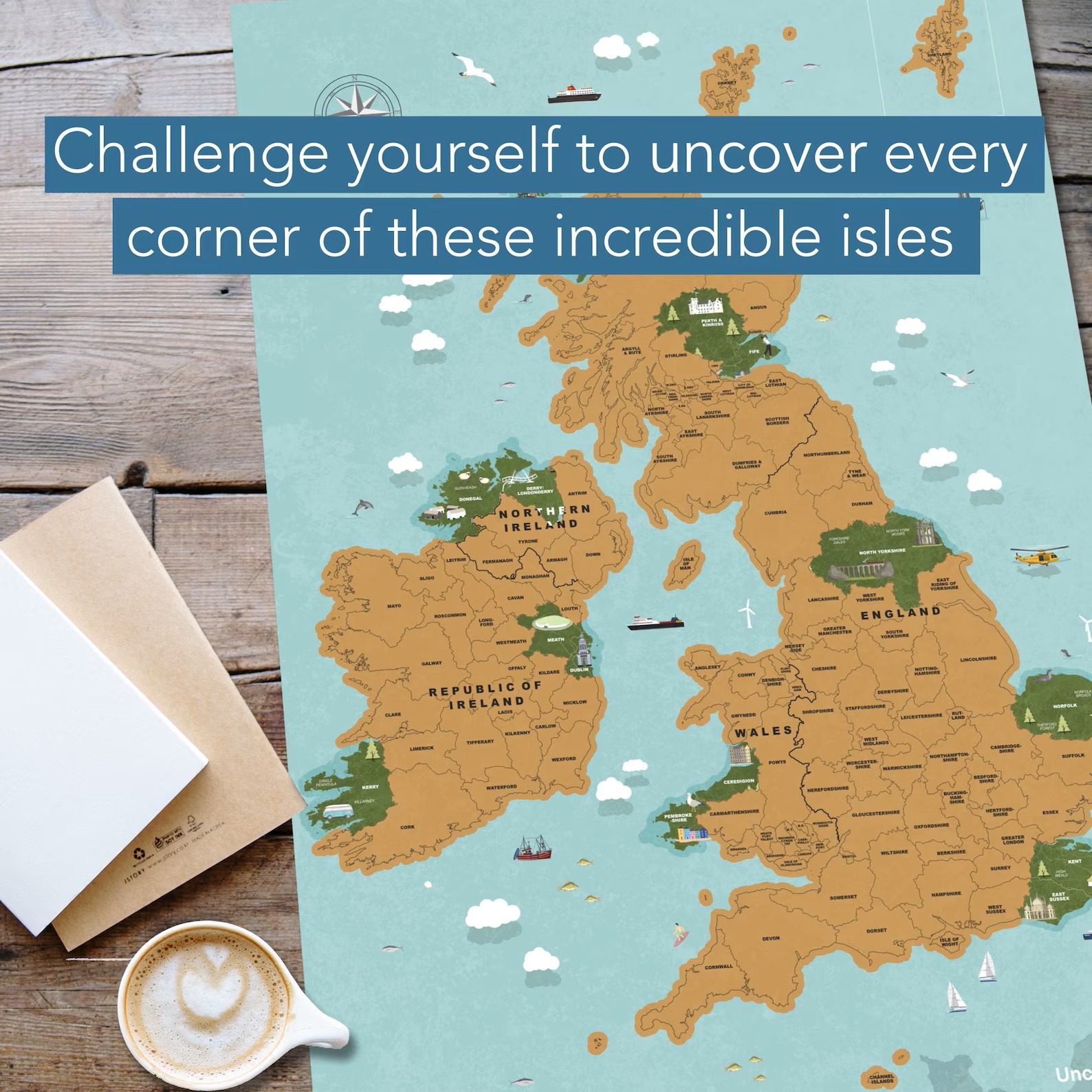 The Uncover Maps UK and Ireland Scratch Off Map challenges you to uncover every corner of these incredible isles, showcasing your journey from the wilds of Scotland to the historic streets of London. Every adventure turns into a colourful display of where you've been - and where you've still got to explore. Ready to make your mark?